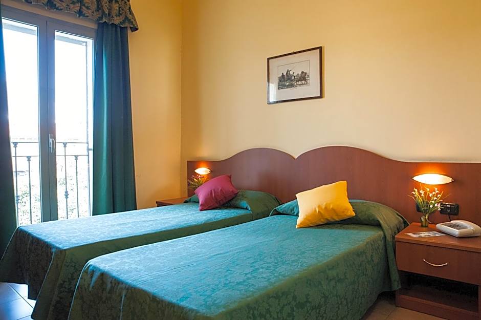 Air-conditioned room with 2 joined single beds, a satellite TV, and private bathroom with shower.